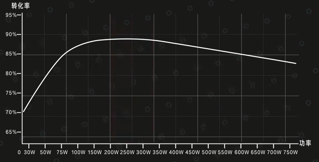 转化率并非是一个固定的数值,在不同负载下转化率是不同的,一般呈现成一个抛物线的形状。电源一般在40%~50%负载下转换率最高