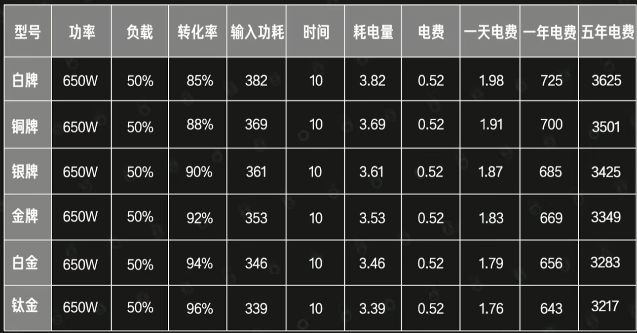 总结:转化率仅能代表电源对电能的利用率,越高的认证,利用率越高,越省电